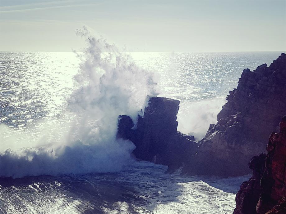 Arrebatamento das ondas ao largo da praia do tonel em Sagres Poeta Tiago Santos