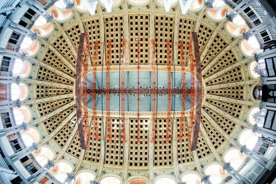 com pedra: estamos perante o teto da Sala Oval do Museu Nacional de Arte da