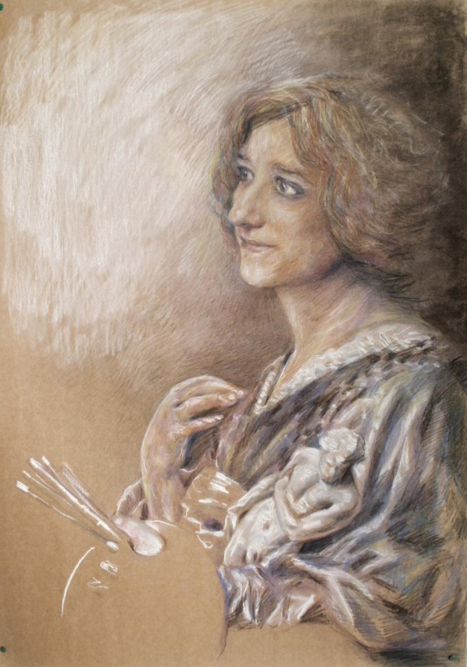 Alegoria para a Pintura, Lápis de cor sobre papel castanho